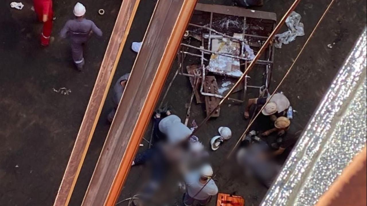 Altınova tersanesi bölgesinde gemi boyamak için insan sepeti kaldırma platformu üzerinde seyahat eden 2 işçinin bulunduğu sepet onlarca metre yükseklikten düştü.